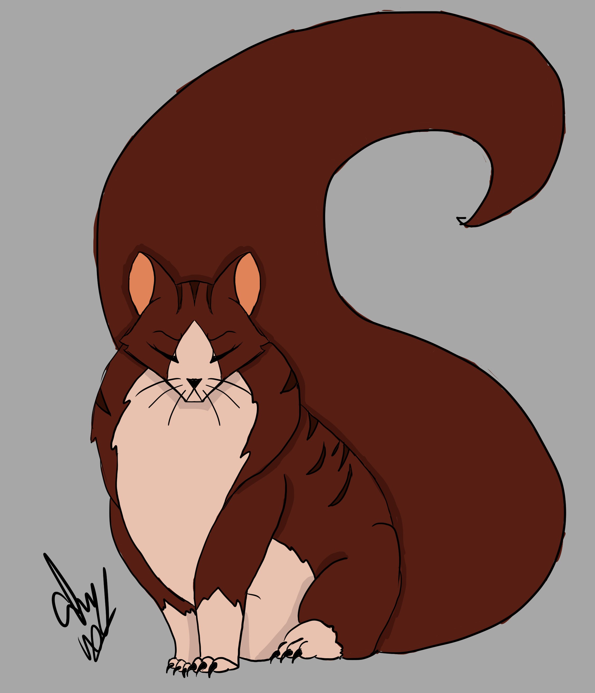 Also! She had found out what she looked like. Apparently her ‘inner-now-outer’ cat form was some type of Norwegian Forest cat (only reason she knew is because she entertained getting one in the past). She was on the thin size for a cat, probably due to the lack of food, but she was still 11 pounds of pure floof. She was a rusty reddish-brown color with a darker shade running tiger stripes through it. From the tip of her forehead, spreading downward along her face and coating her entire underbelly, her color was white. She also had white ‘socks’ as they call it, while the rest of her leg was the reddish-brown. All-in-all, she thought she was a very pretty cat.