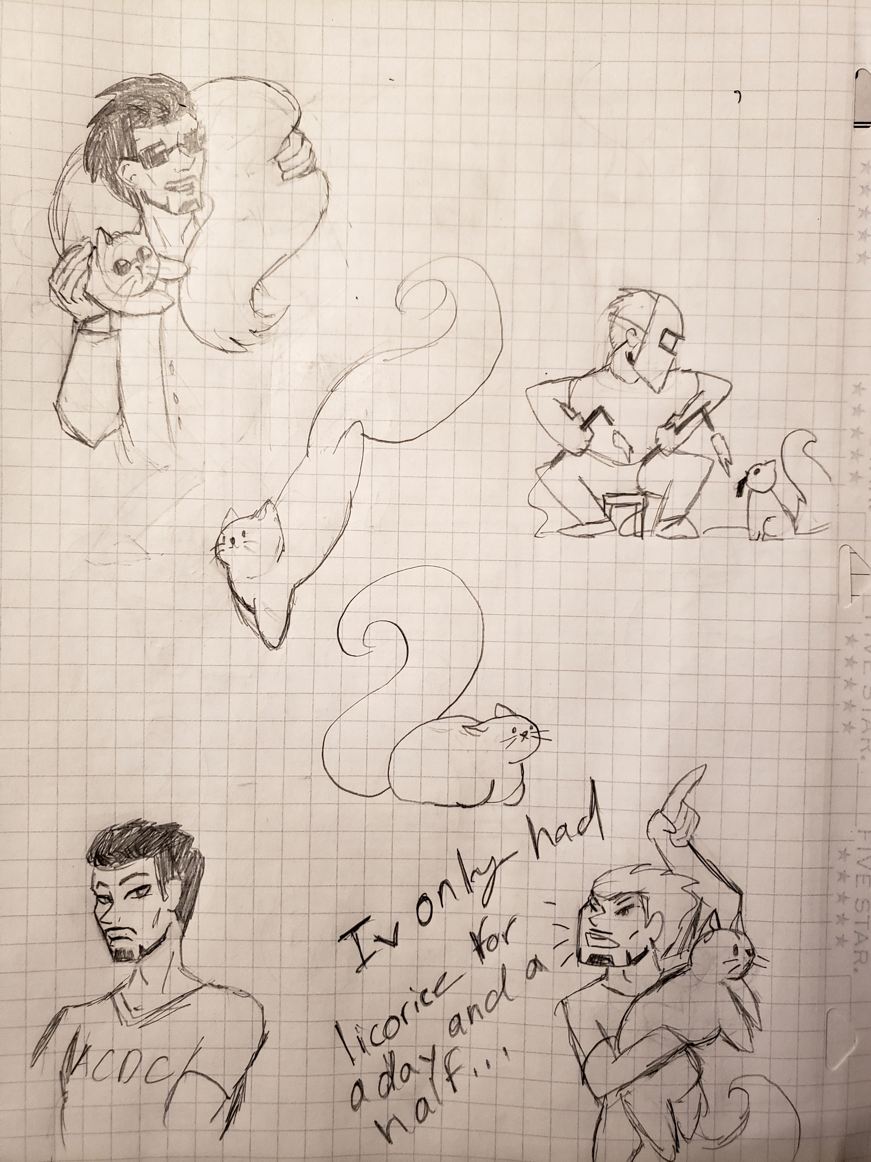 “Gotta head home Licorice stick, the world waits for no man, no matter the cat.” RDJ stated, “quick pic?” he leaned down, taking out his phone and putting it in selfie mode to snap a quick pic of her snuggled into him like pillow, one paw stretched up, patting his hand in hopes of more petting.