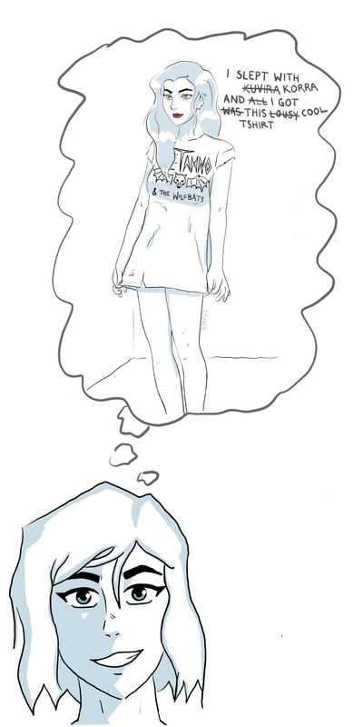 Korra laughed lightly at my feigned ignorance and tightened her grip around my body. Somehow her toned arms remained surprisingly soft and gentle in their hold. I knew she would be the best cuddler. Called it.
