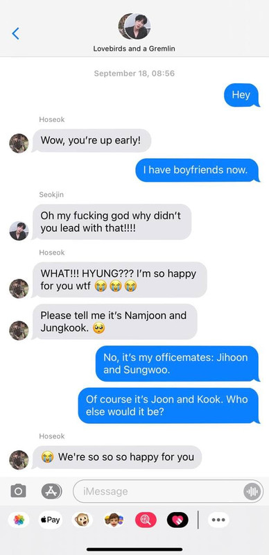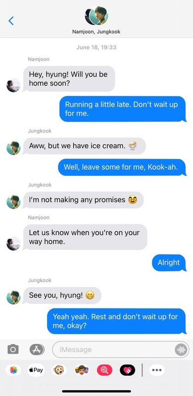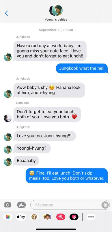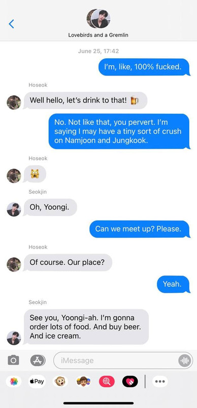 Were they talking about the pizza place near Jungkook’s school that they wanted to visit? Or was it about that client of Namjoon’s that’s just a grade A asshole? Maybe it was the research Yoongi’s currently working on?