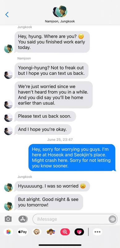 When Yoongi leaves, it’s well after he’s had one too many slices of pizza that Namjoon ordered. When Yoongi leaves, he has both Namjoon and Jungkook’s contact numbers saved in his phone.