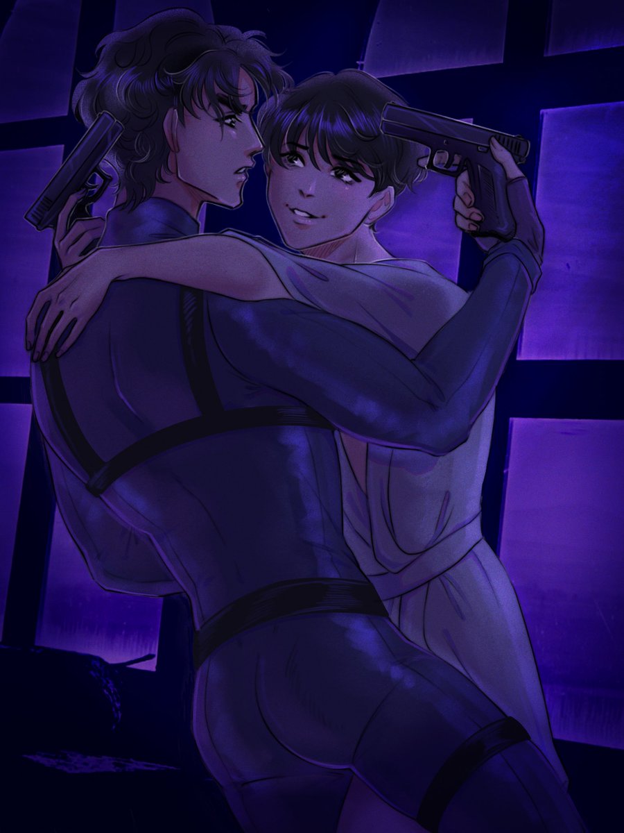 It takes him a second that his gun is also gone. Another to realise that as soon as they parted from the kiss, they pulled the other’s guns on each other, at the same time.