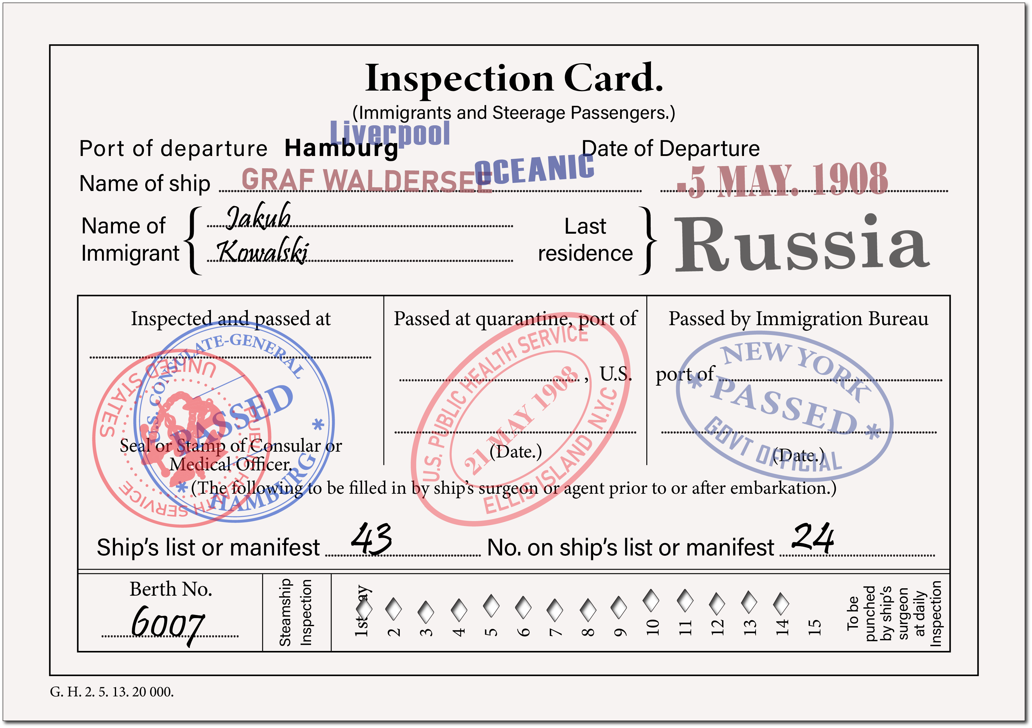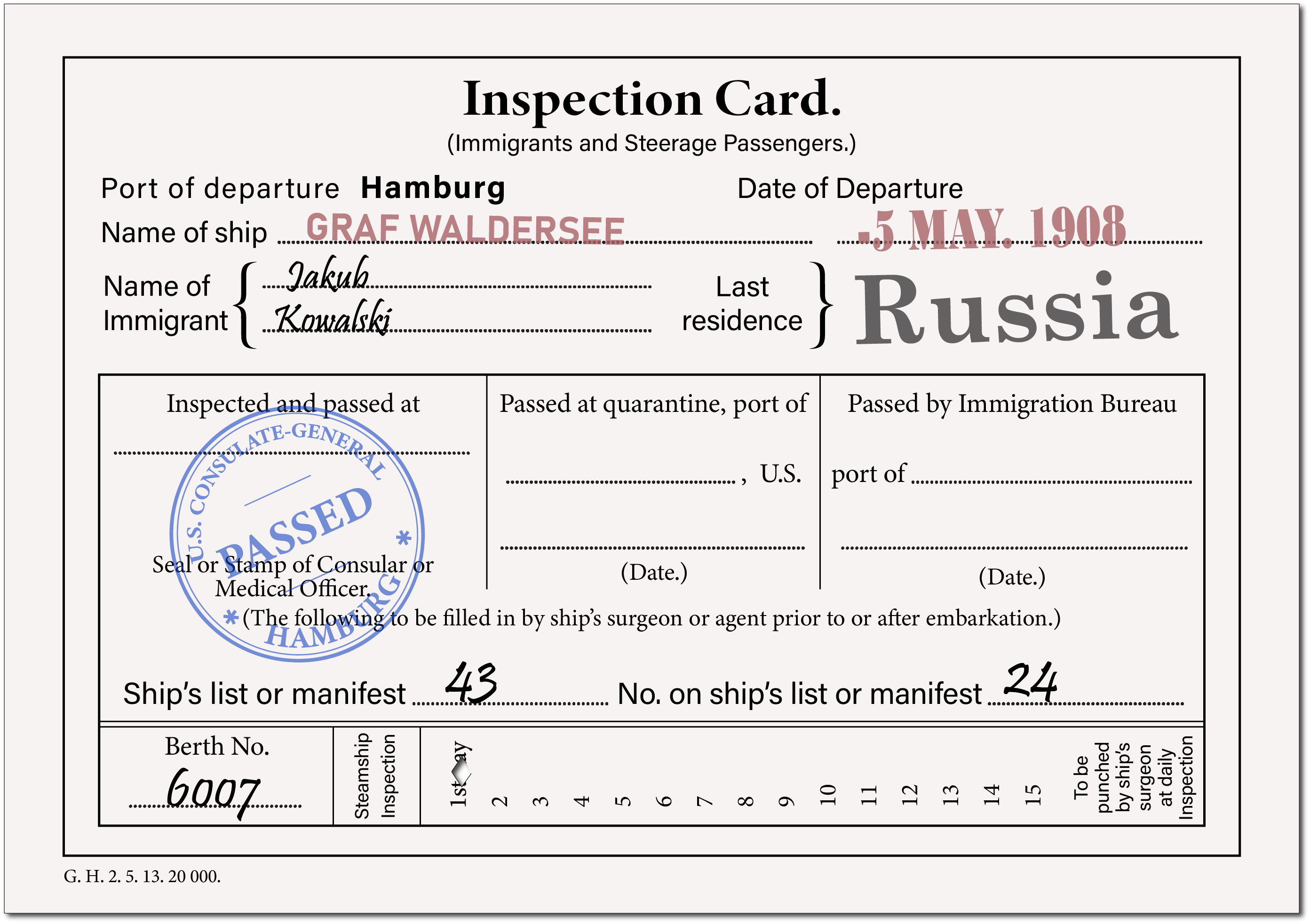 First, that Józef had already beaten him there and was standing next to her, staring at the table. And second, there was a large piece of paper lying flat on the table next to Tate’s letter. He couldn’t read what it said, it wasn’t Hebrew or Yiddish or Polish or even Russian, but the thick black lettering jumped out at him anyway. Hamburg America Line.
