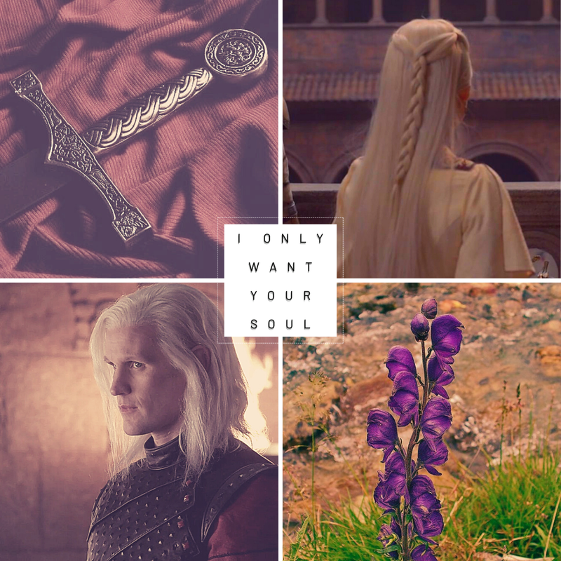 Daemon traces her uneasily as she moves throughout the Godswood, with charming and bright, sweet smiles. She seems so small to him, tiny wrists covered in jewels and gold, making her snow-white skin shimmer in the late sun. Even with a personal Maester, the ever-loyal Lady Alys close to her side, and two of his own men whose sole duty is to protect her, he can’t help but follow her steps. He imagines shadows and enemies around every corner, poisoners and cutthroats alike who threaten her. The fear only seems to blossom as her stomach continues to curve and grow.