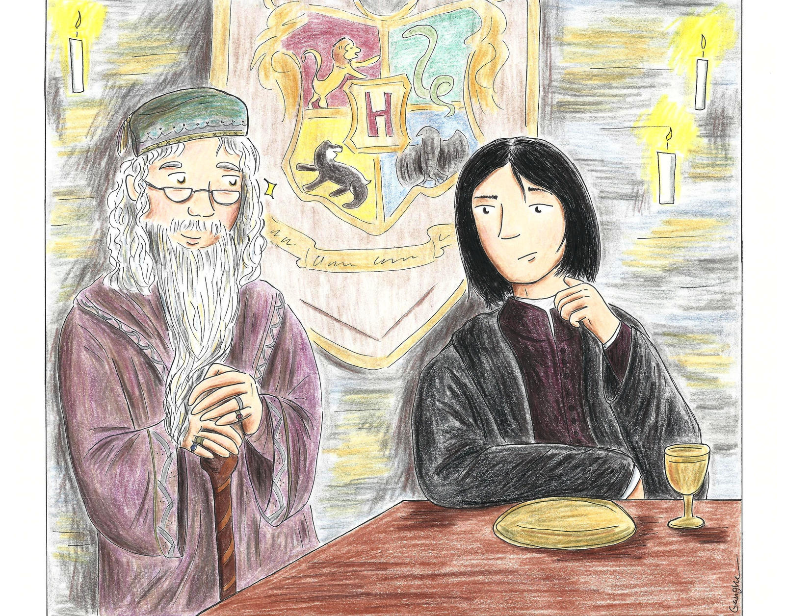 During the sorting ceremony, Snape kept to his office in the dungeons. The less he knew of the newest dunderheads he would have to teach, the pleasanter the year would unfold.