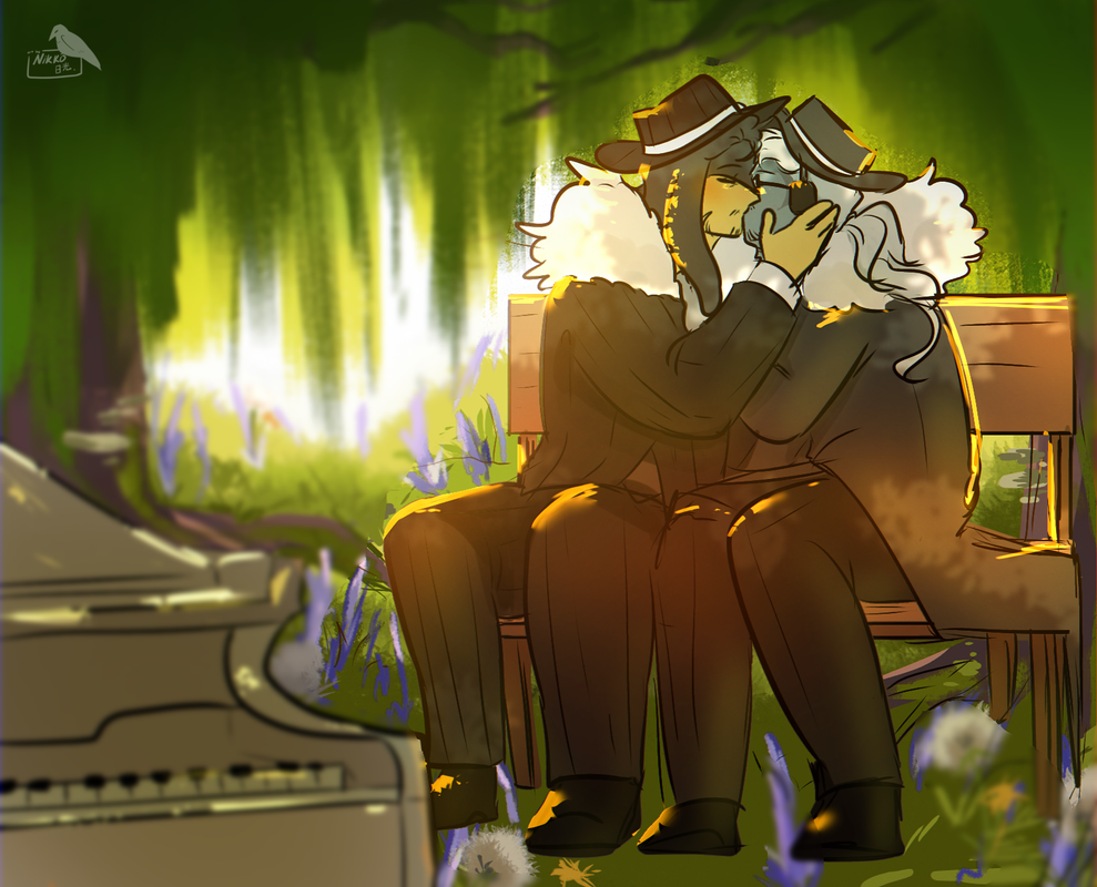 He was back in his usual outfit, the classic sunglasses and fedora adorned on his head. They looked around, glancing up at the willow tree he had woken up from under. Dead like him. If this was his hell, then so be it. It's what they deserved after all.