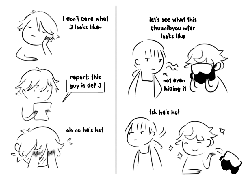 [lsy looks away bashfully, j in shadow implied turning towards lsy]