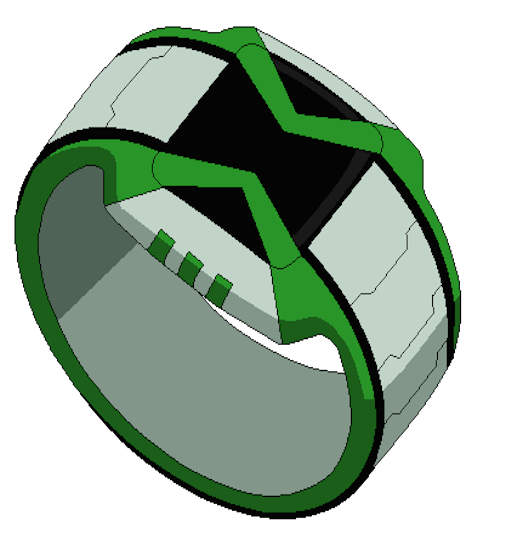 What she saw was a large crater that she could slide into as she headed toward the impact site and saw what looked like some kind of grey alien space pod. Suddenly, green electronic lines glowed as the pod opened itself up to reveal what appeared to be a digital wristwatch with a square faceplate and a white, green, and black color scheme. The faceplate was black with two green stripes forming an outline shaped like an hourglass.