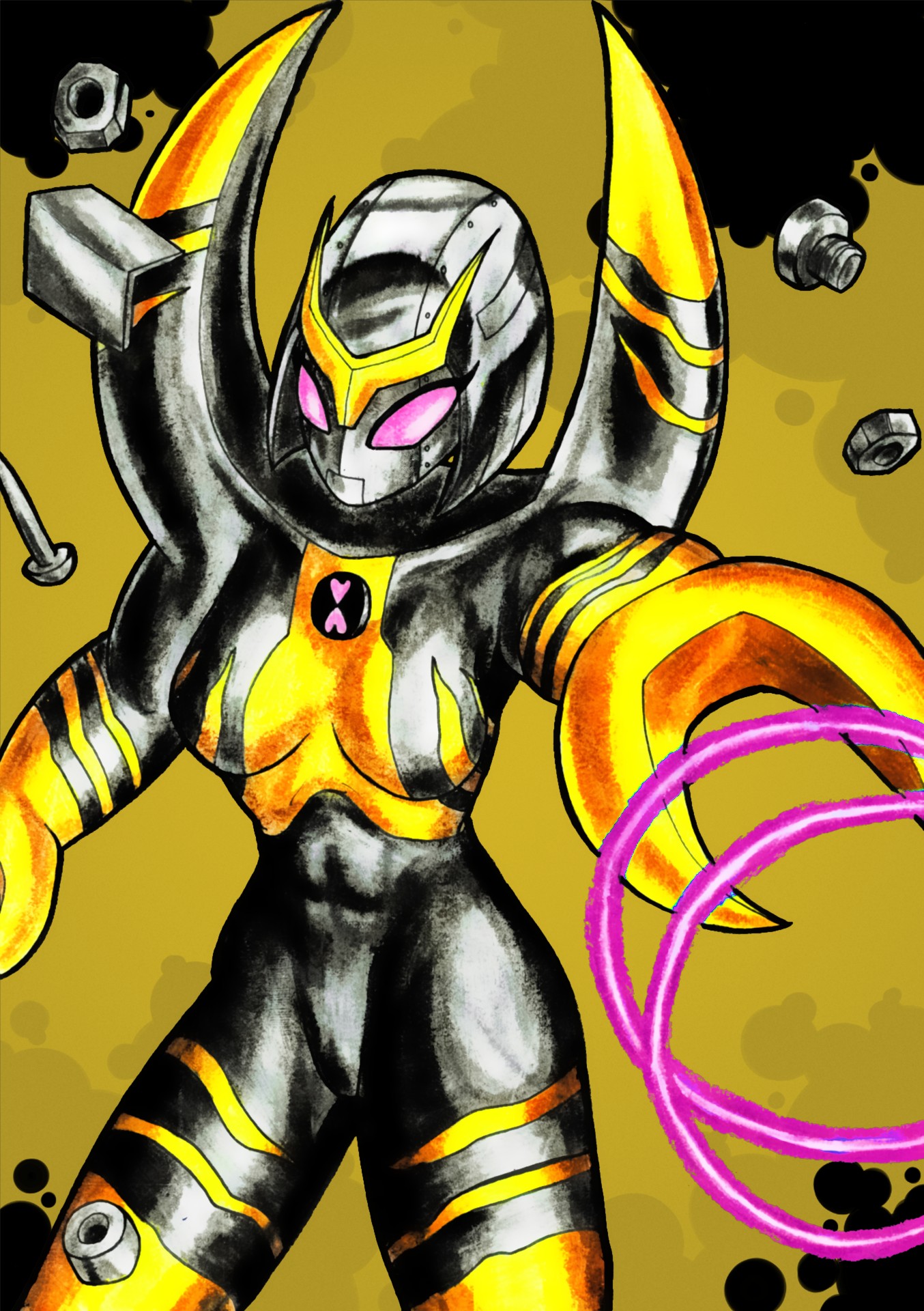 "Babe!" Black Beetle called out as he flew over to try to pry her free