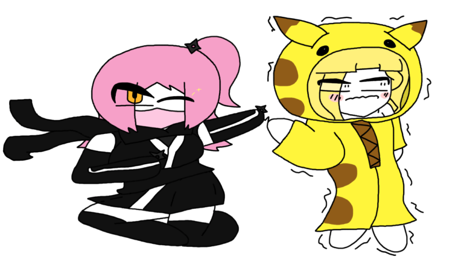 They exited the Halloween store after making their purchases and met back up with Utena, Haruka, Korisu, Kaoruko, and Kiwi - Utena was dressed as a witch, the costume covering up most of her body - Kiwi was dressed up as a black cat to pair with Utena, Haruka was wearing a ninja costume with a pink mask while Korisu was wearing an Alice costume, and Kaoruko was... Was wearing a Pikachu onesie - Sayo couldn't contain her laughter.