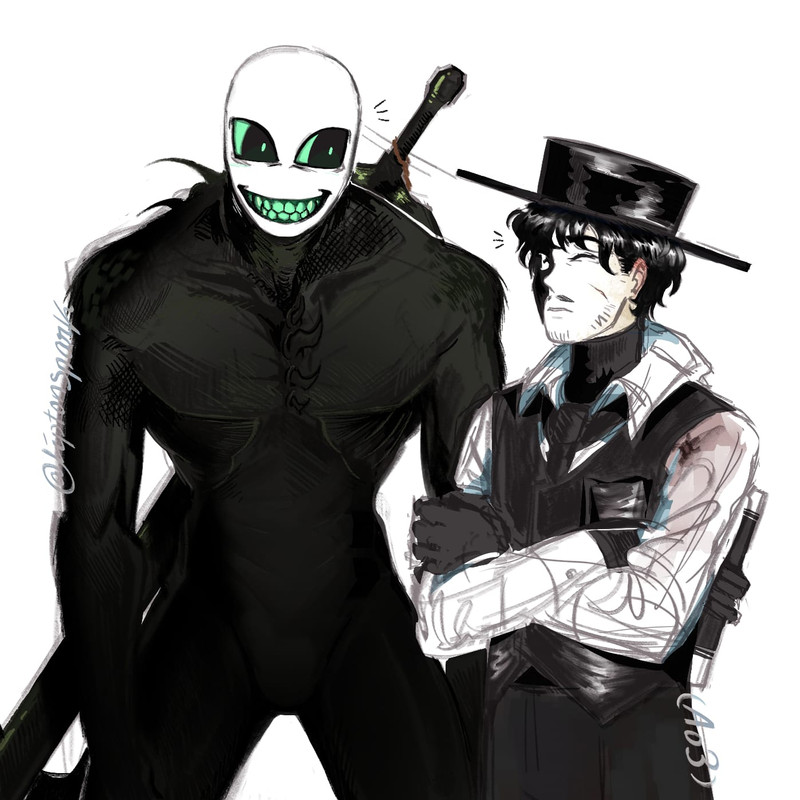 Artful came to an abrupt stop, surprised- he hadn’t expected to be heard over all the chaos surrounding the place. Devesto was the first to turn, shooting him a look (probably because he was still in bloodied clothes), while MeQuot did the same shortly after. His expression, however, brightened instantly when he saw Artful.