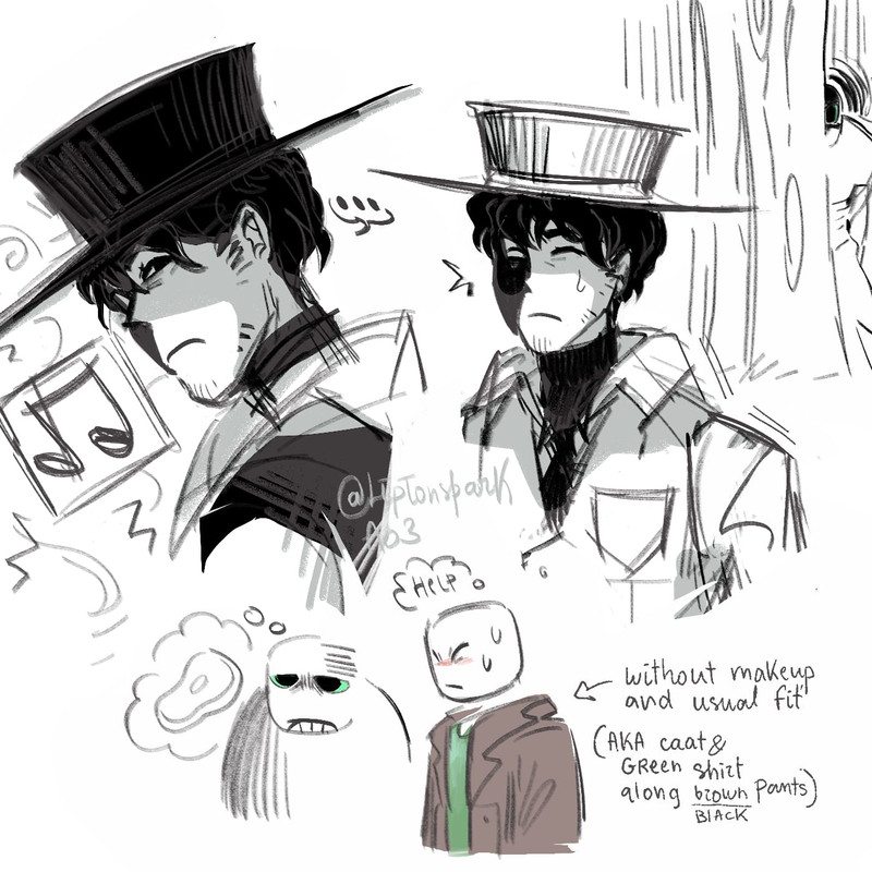 He sprang up from the bed, half-sitting, alert. Who could possibly be in the middle of the forest at sunset? His hand shot to the mask, pressing it back over his face. The hat lay nearby; he snatched it up and secured it on his head. Slowly, cautiously, he rose to his feet, ears straining for any sound. At first, he thought maybe looking out the window would be a better idea. But… he didn’t know who or what might be out there. Risking his own safety would be foolish. After all, he was far too noticeable with all the makeup on.