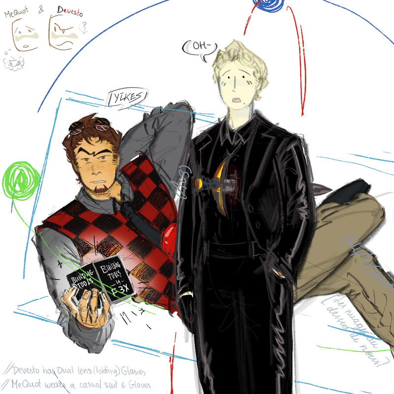 -“Oh yeah, I was about to fling that thing off- thought it was gonna take my whole ass finger with it- but SOMEONE,” Devesto shot a glare down at MeQuot, who didn’t even flinch at the raised voice, “decided to stop me, and that thing bolted outta sight.”