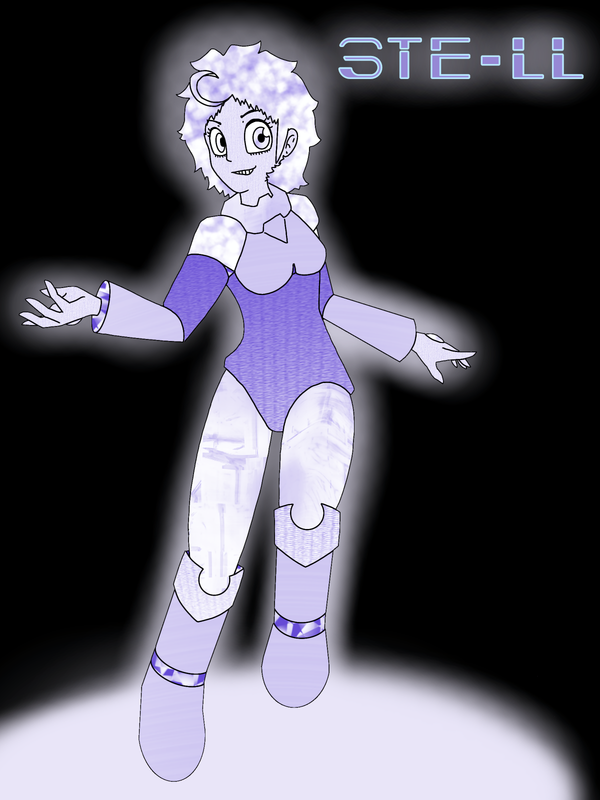 Bio: SteLL was once a human girl named Stella Gruddam. She was taken from her family at a young age to live in the palace of Alfa as part of an arranged marriage with Luist The Chun. Growing up alongside the royal family, she became deeply attached to Luist, and the two developed a genuine bond that slowly turned into true love as they reached their teenage years. Together, they enlisted in the military academy of Alfa, which operated under the M9 program. On the day of their graduation, at the age of 15, the war against Servik began. Many people died that day. Consumed by grief and anger, Stella secretly joined Luist and their friends in a counterattack, seeking revenge against the enemy forces. During that counterattack, Stella was struck by an illegal projectile that caused her body to disintegrate into digital fragments, effectively turning her into data. Locoft managed to recover what remained of her essence and preserve it within a constructed core, transforming her into an artificial intelligence. From that moment on, SteLL continued to exist alongside Luist, sharing much of his life, history, and war experience, now as an AI rather than a human.