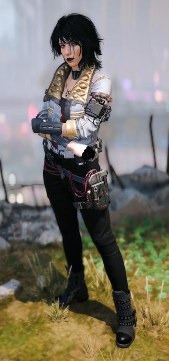 V struggled to even look up, but once she did, she was met with an Asian woman, decked out in a denim jacket and netrunner suit, gear strapped around her waist.