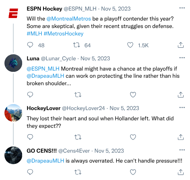 Luca smiles at him. “Did you ever chirp Hollander?” Luca asks, genuinely curious.